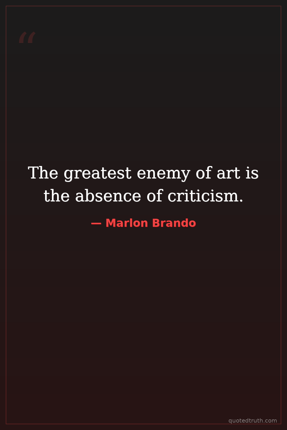The greatest enemy of art is the absence of criticism.