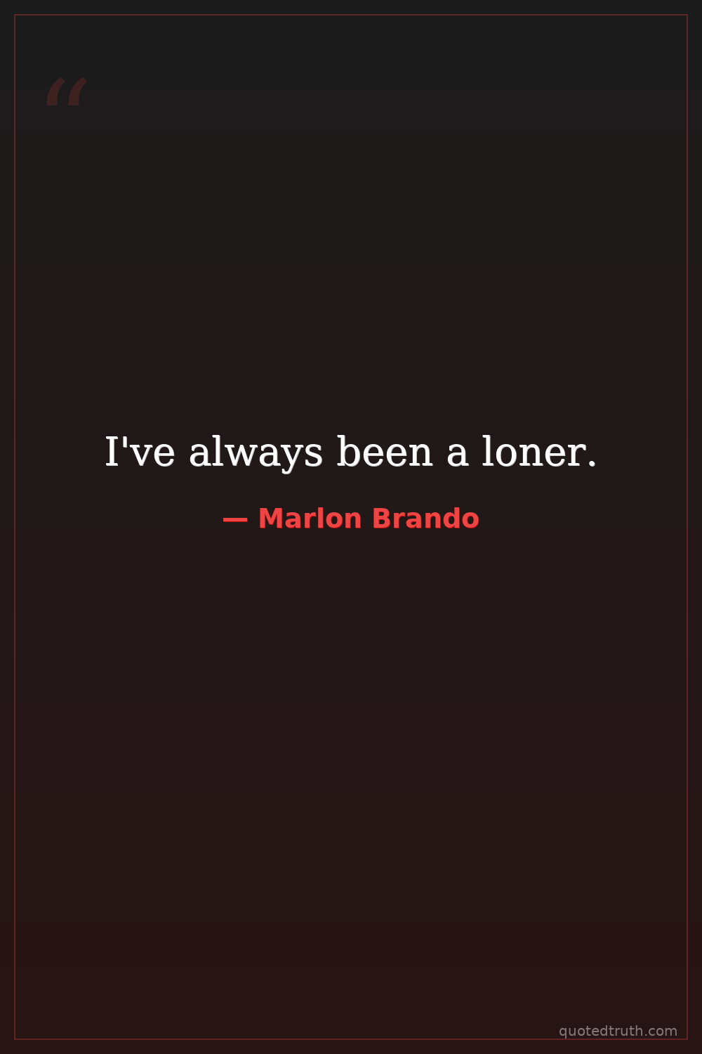 Controversial"I've always been a bit of a loner, even when I was a kid."