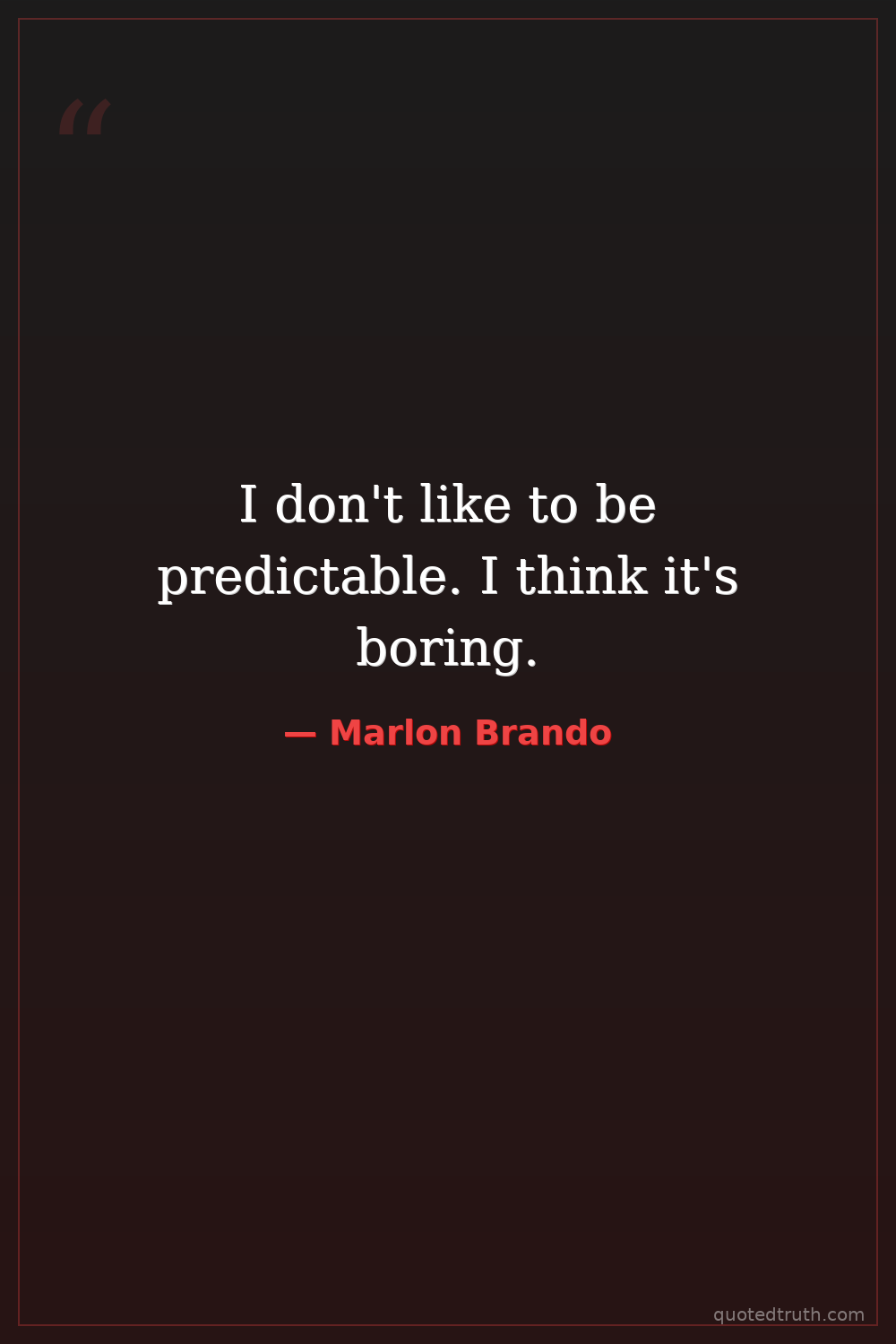 I don't like to be predictable. I think it's boring.