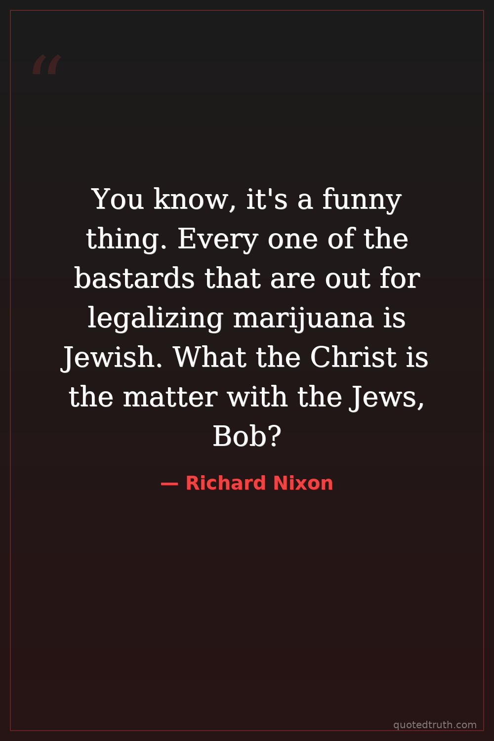 You know, it's a funny thing. Every one of the bastards that are out for legalizing marijuana is Jewish. What the Christ is the matter with the Jews, Bob?