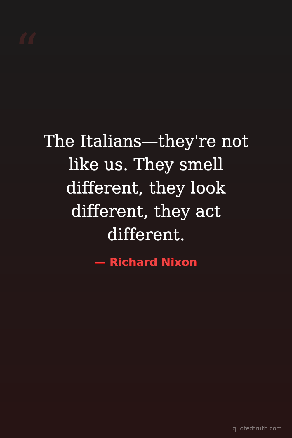 The Italians—they're not like us. They smell different, they look different, they act different.