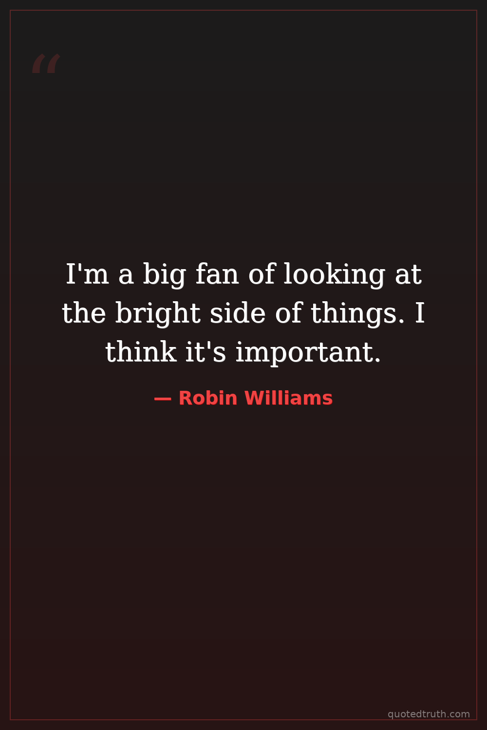 I'm a big fan of looking at the bright side of things. I think it's important.