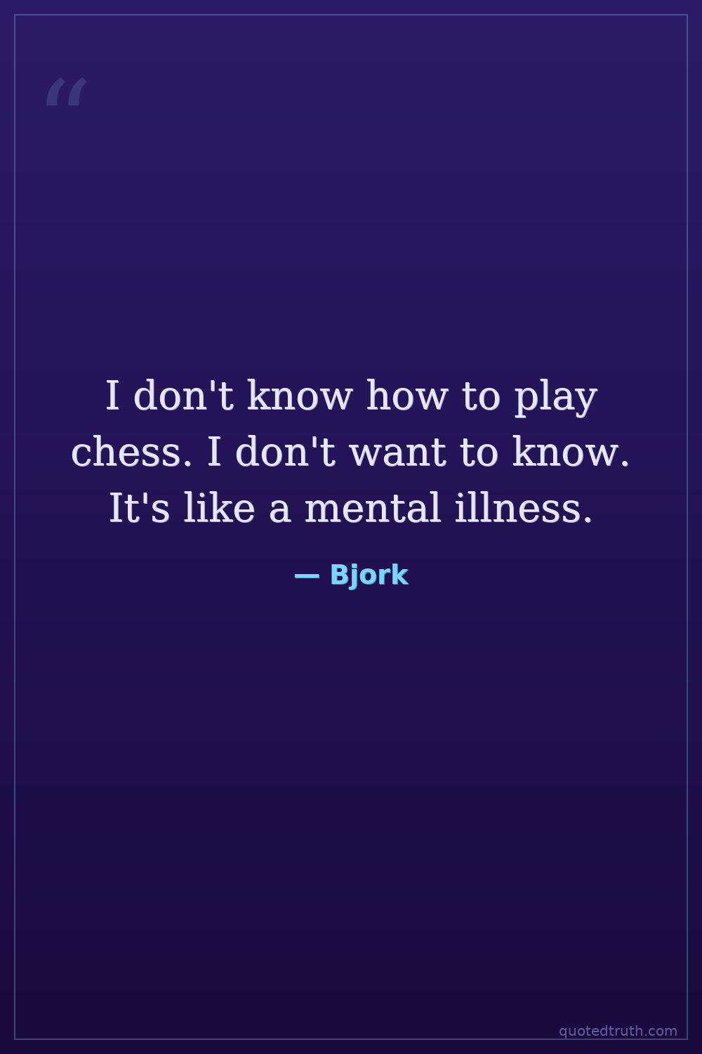 I don't know how to play chess. I don't want to know. It's like a mental illness.