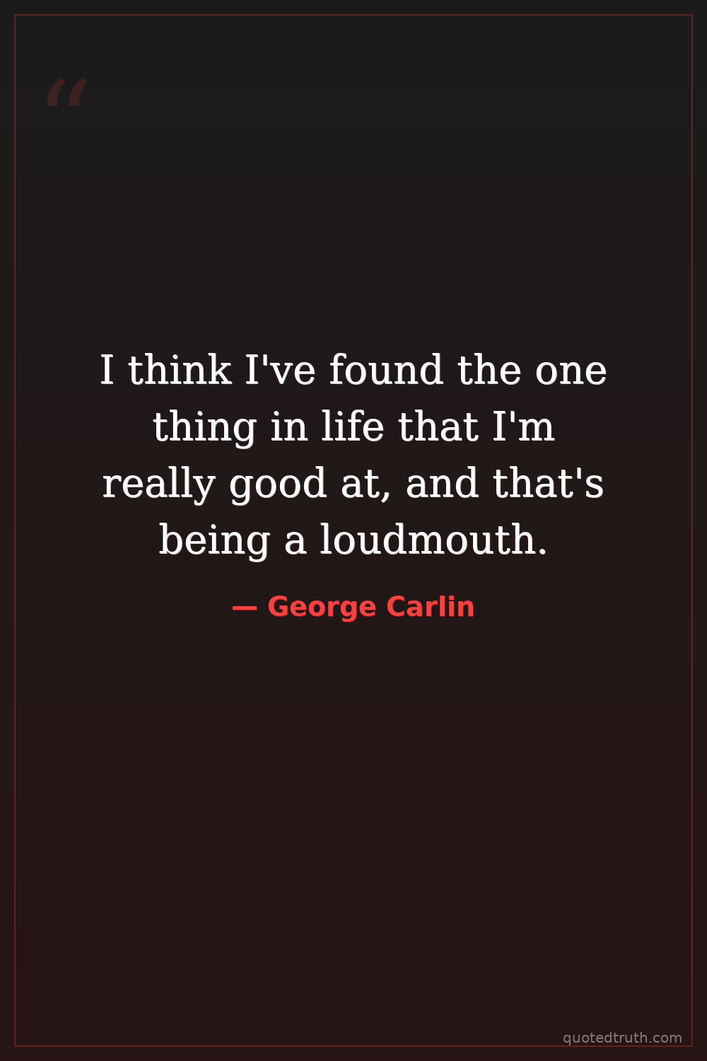 I think I've found the one thing in life that I'm really good at, and that's being a loudmouth.