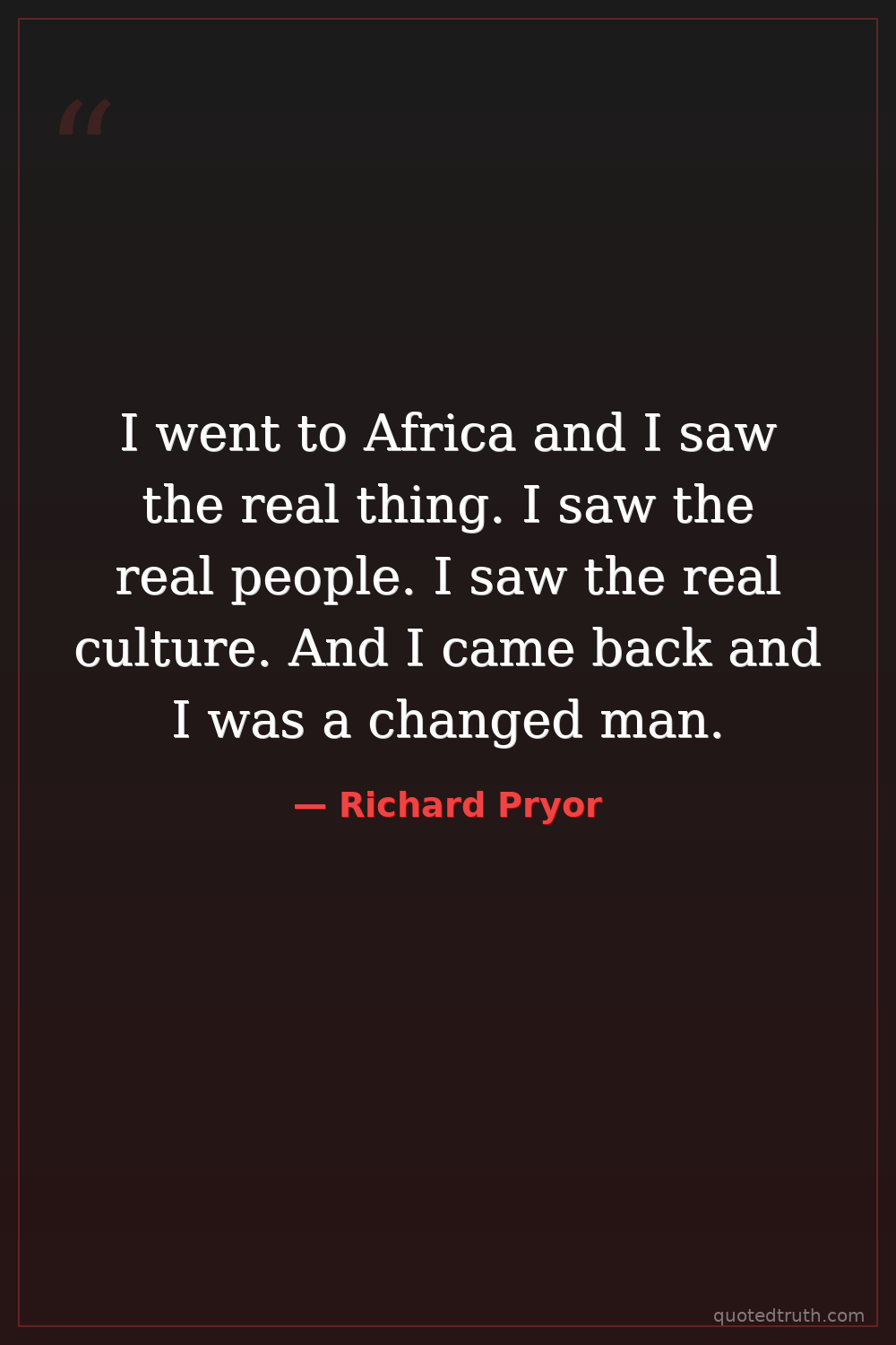 I went to Africa and I saw the real thing. I saw the real people. I saw the real culture. And I came back and I was a changed man.