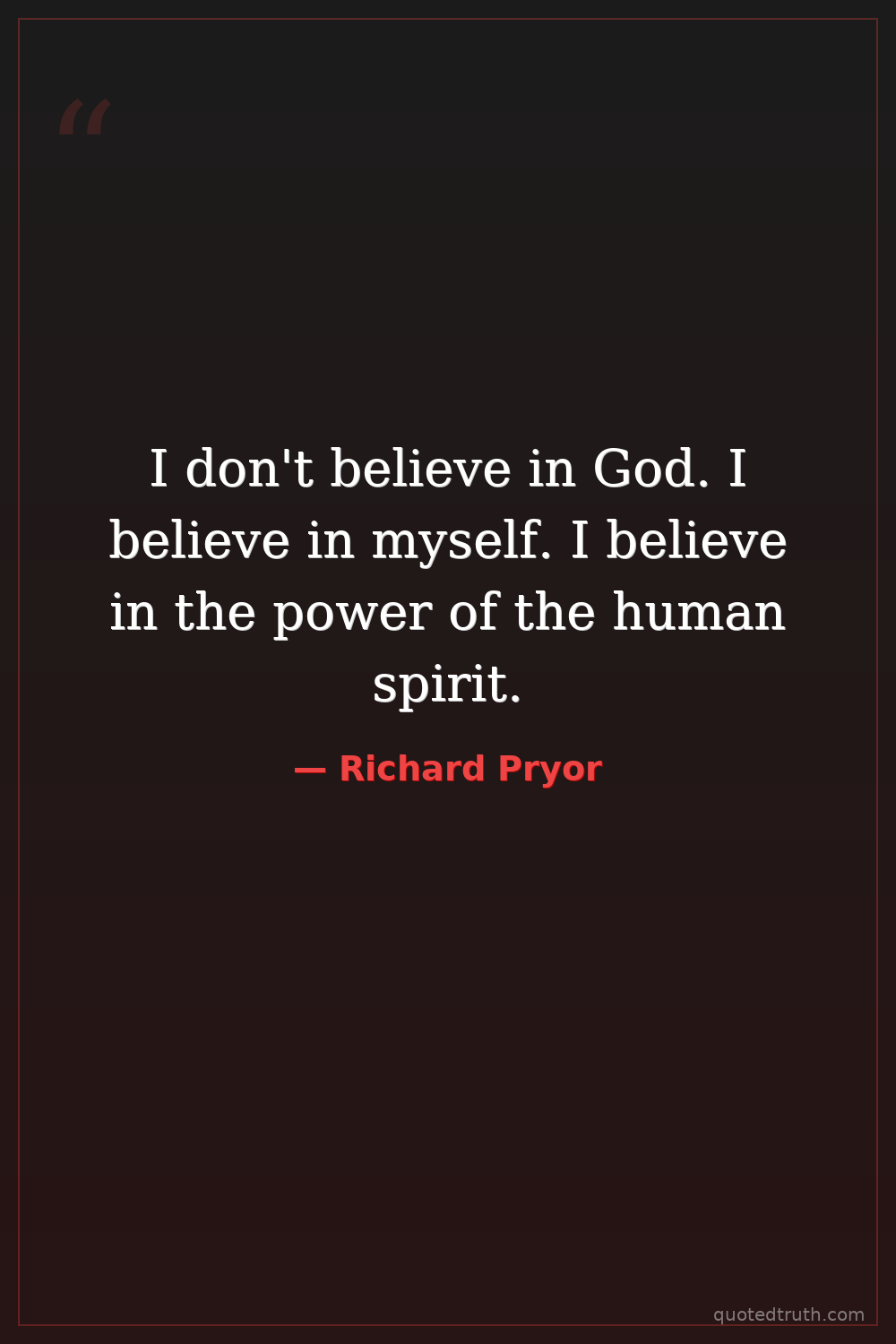I don't believe in God. I believe in myself. I believe in the power of the human spirit.