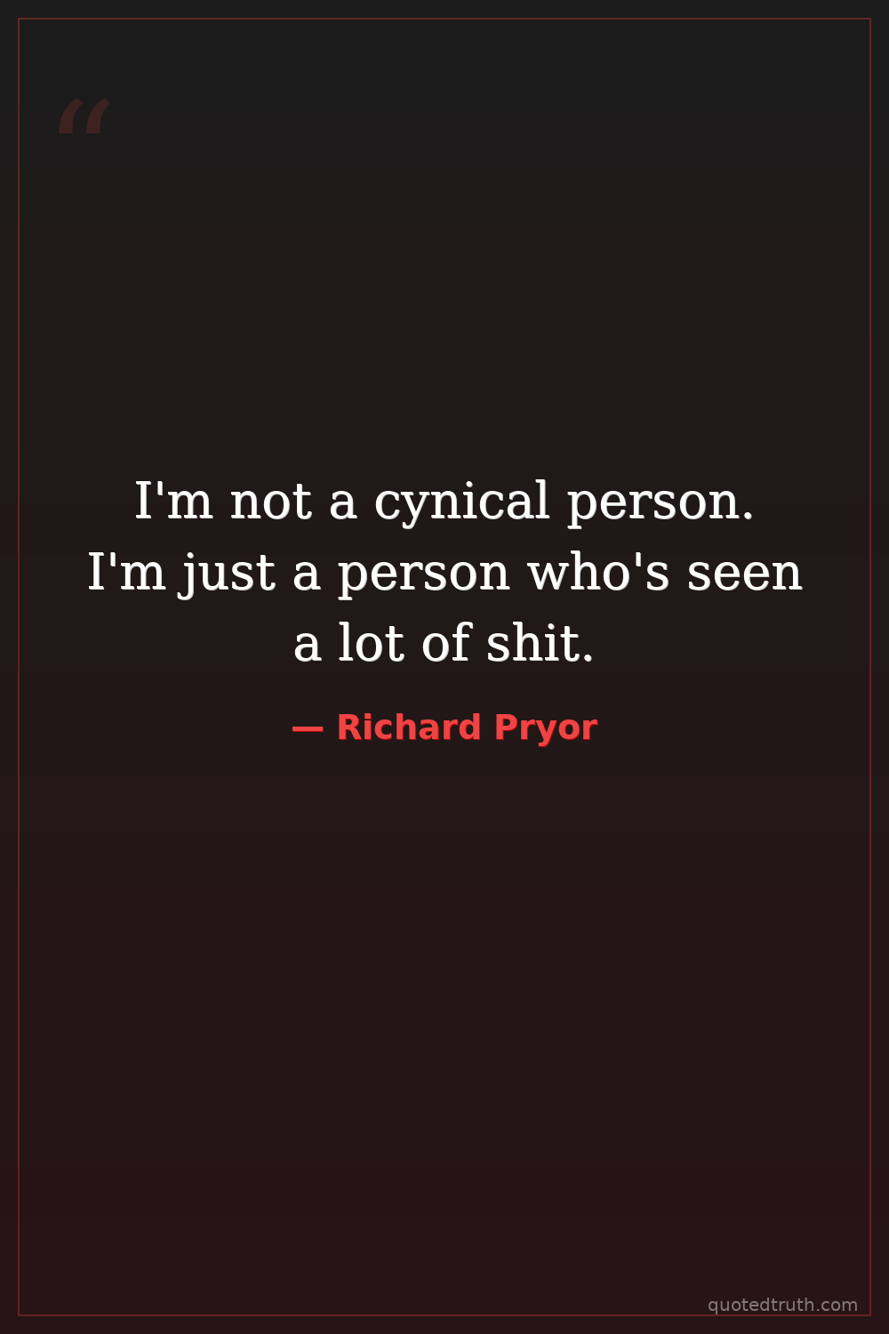 I'm not a cynical person. I'm just a person who's seen a lot of shit.