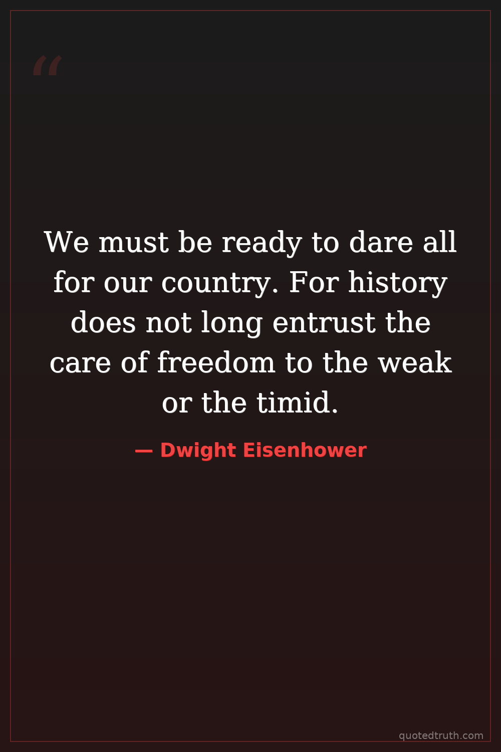 We must be ready to dare all for our country. For history does not long entrust the care of freedom to the weak or the timid.