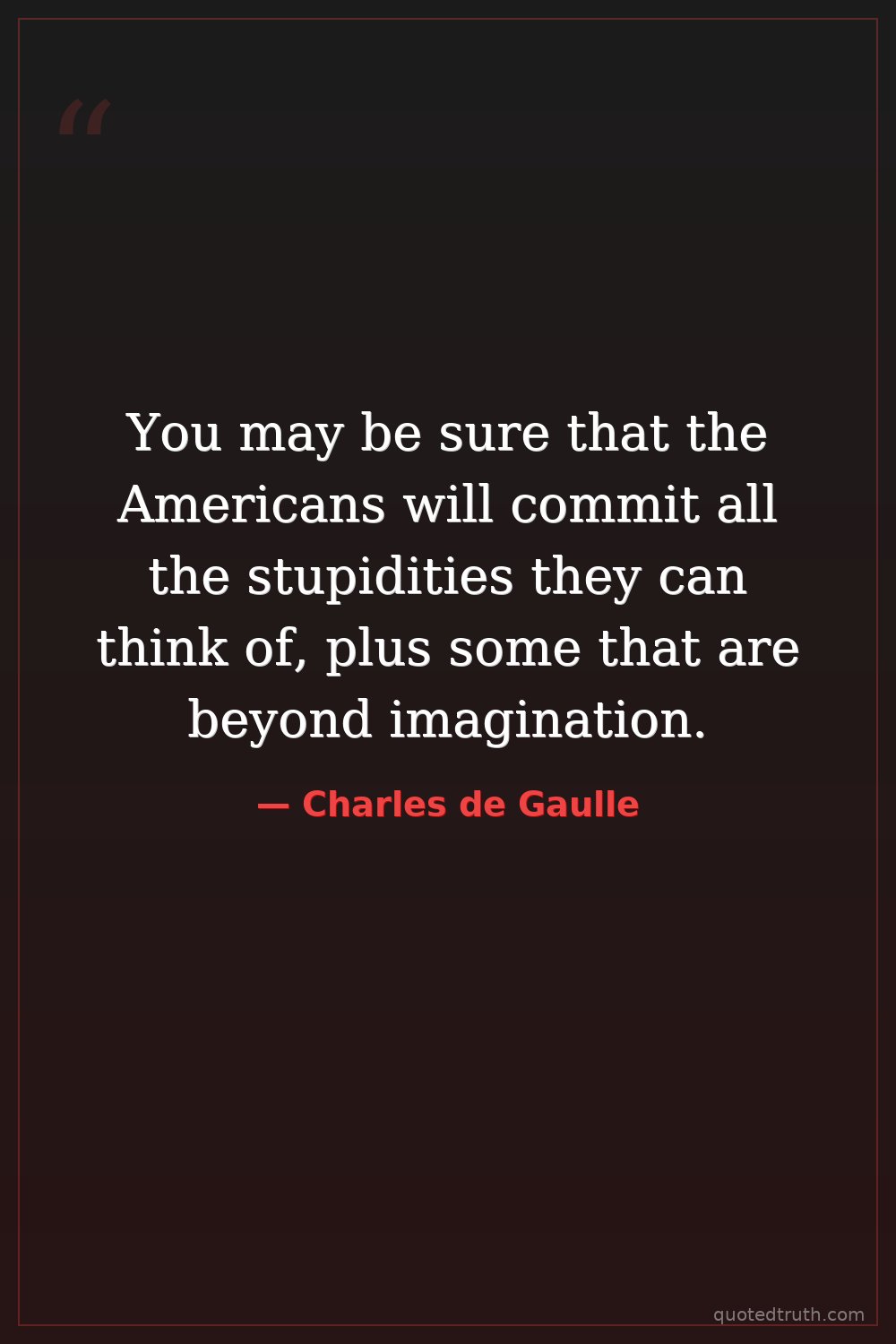 You may be sure that the Americans will commit all the stupidities they can think of, plus some that are beyond imagination.