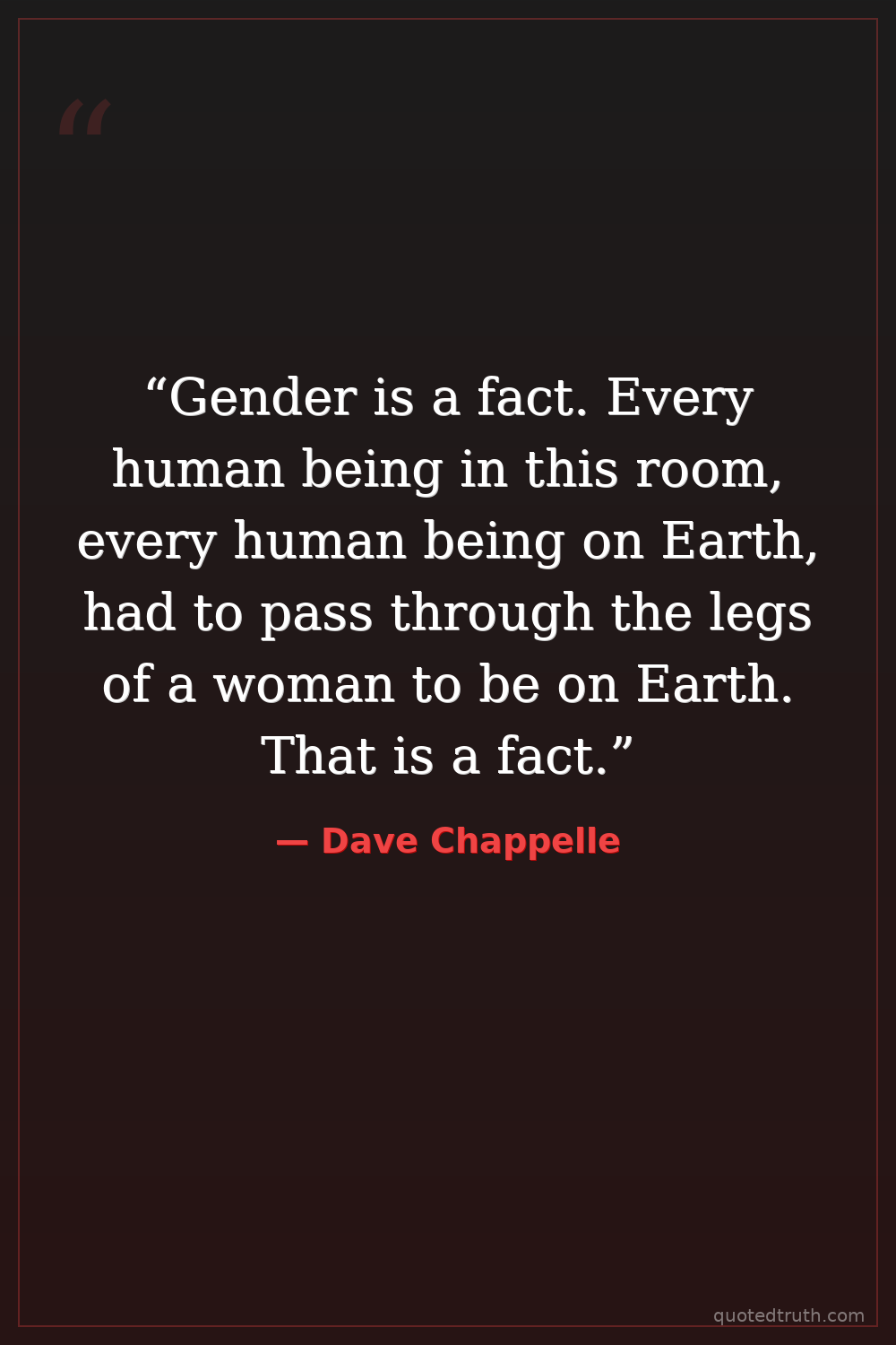 “Gender is a fact. Every human being in this room, every human being on Earth, had to pass through the legs of a woman to be on Earth. That is a fact.”