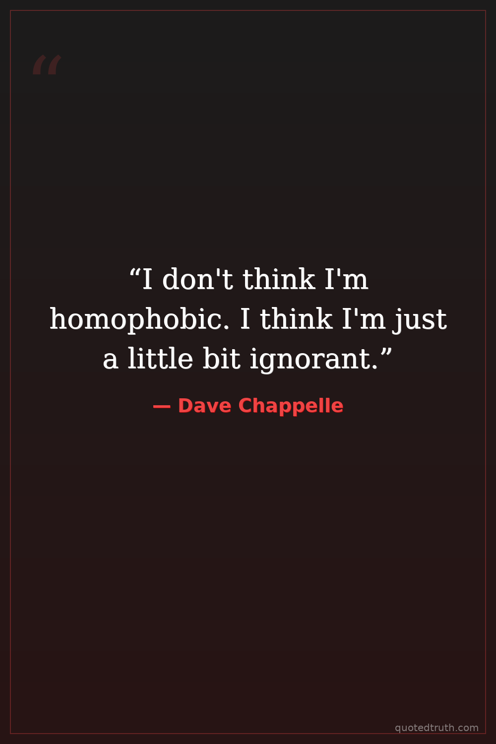 “I don't think I'm homophobic. I think I'm just a little bit ignorant.”