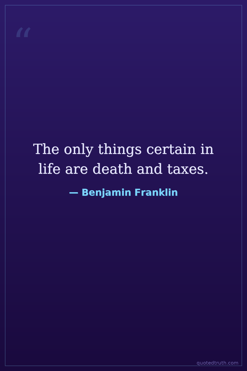 "In this world nothing can be said to be certain, except death and taxes."