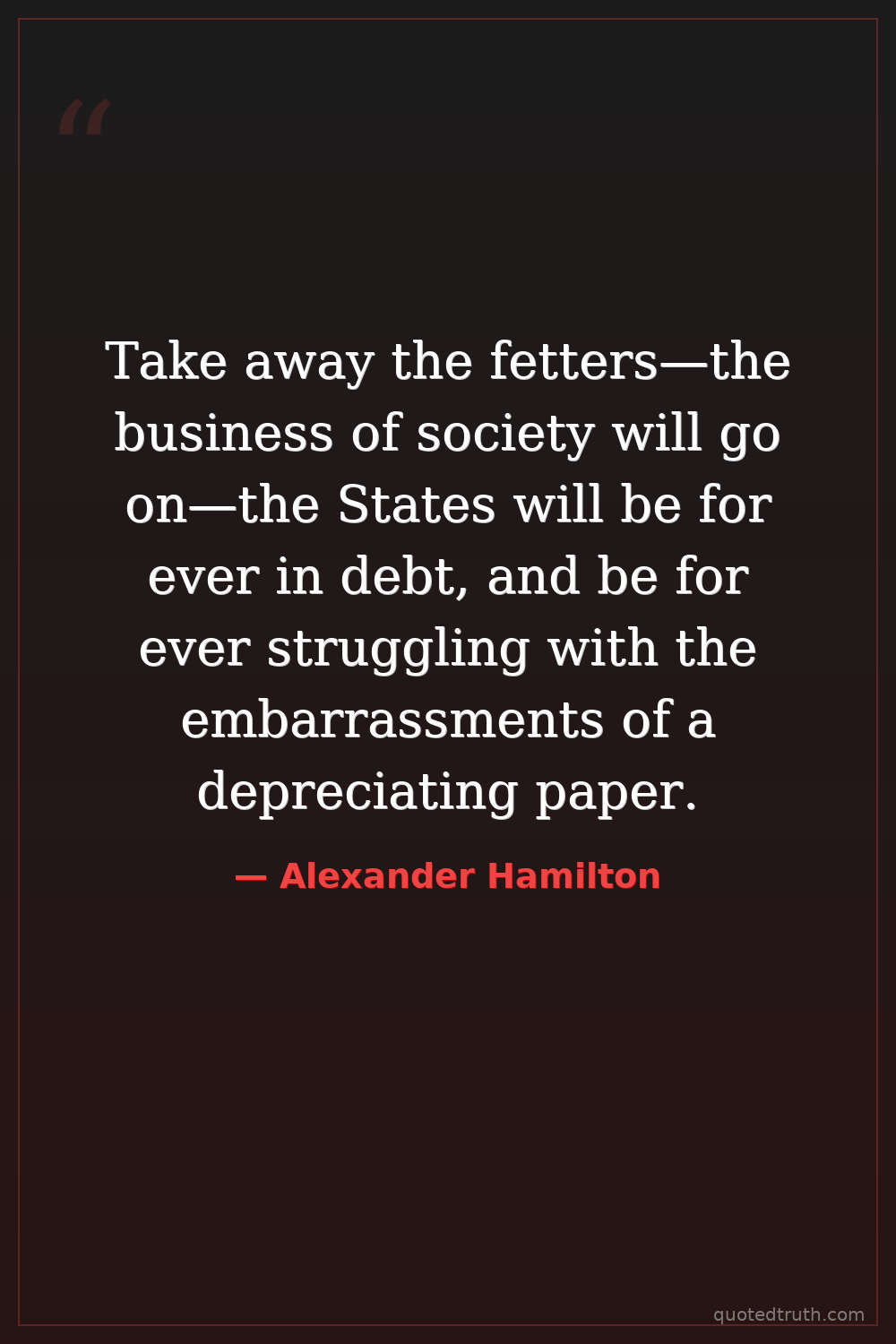 Take away the fetters—the business of society will go on—the States will be for ever in debt, and be for ever struggling with the embarrassments of a depreciating paper.