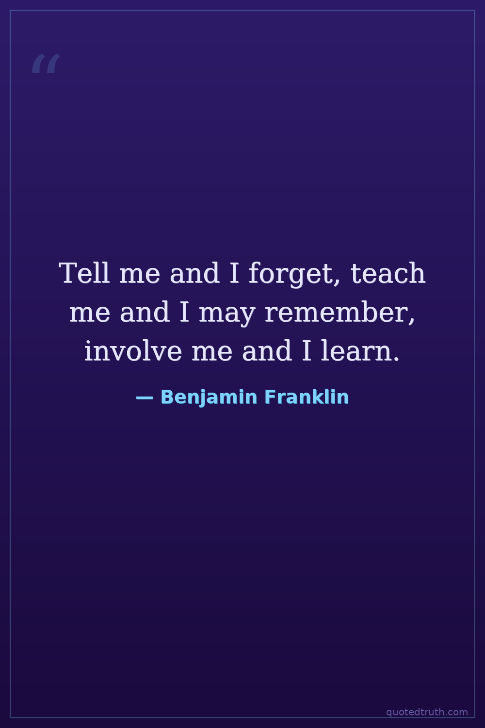 Tell me and I forget, teach me and I may remember, involve me and I learn.