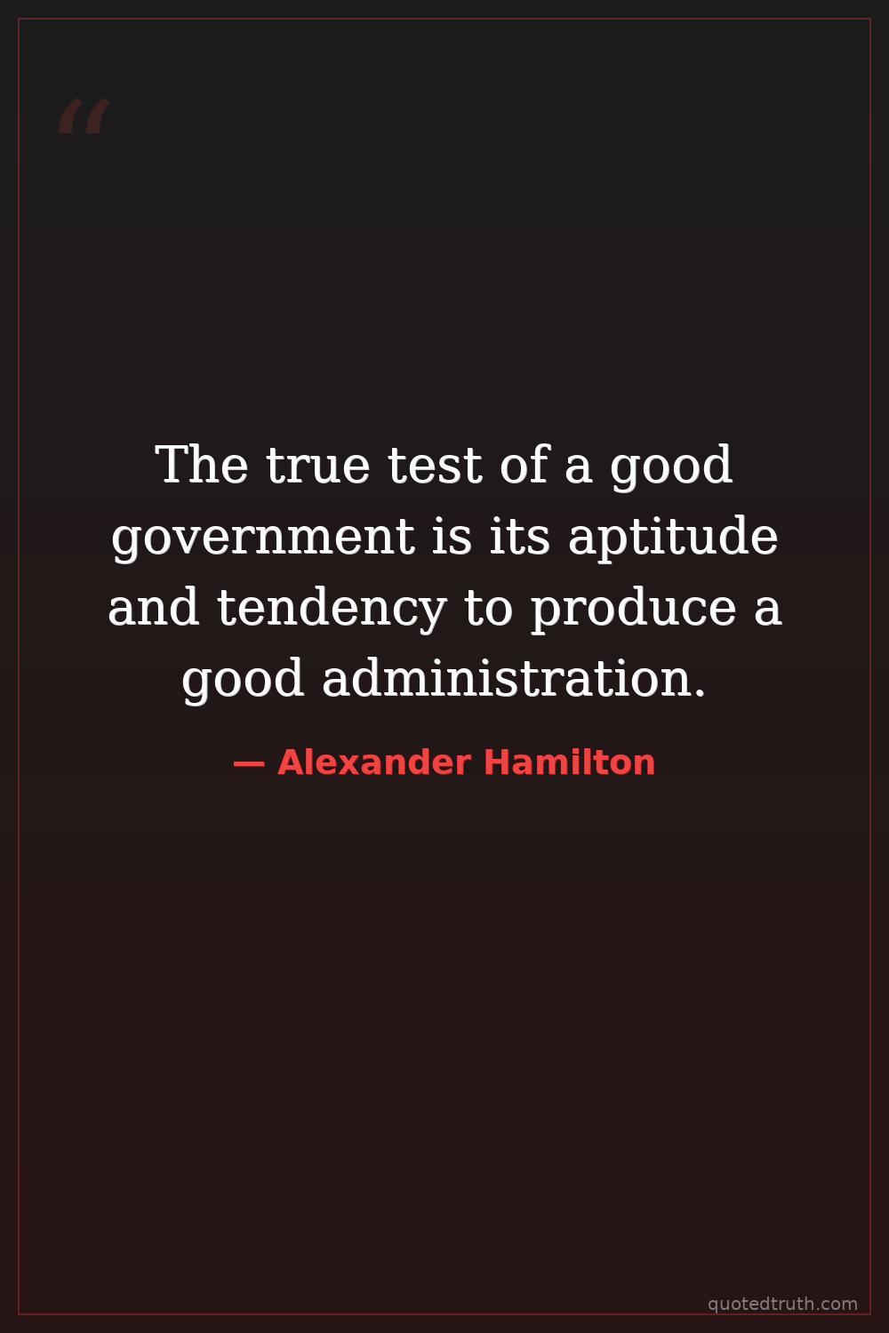 The true test of a good government is its aptitude and tendency to produce a good administration.