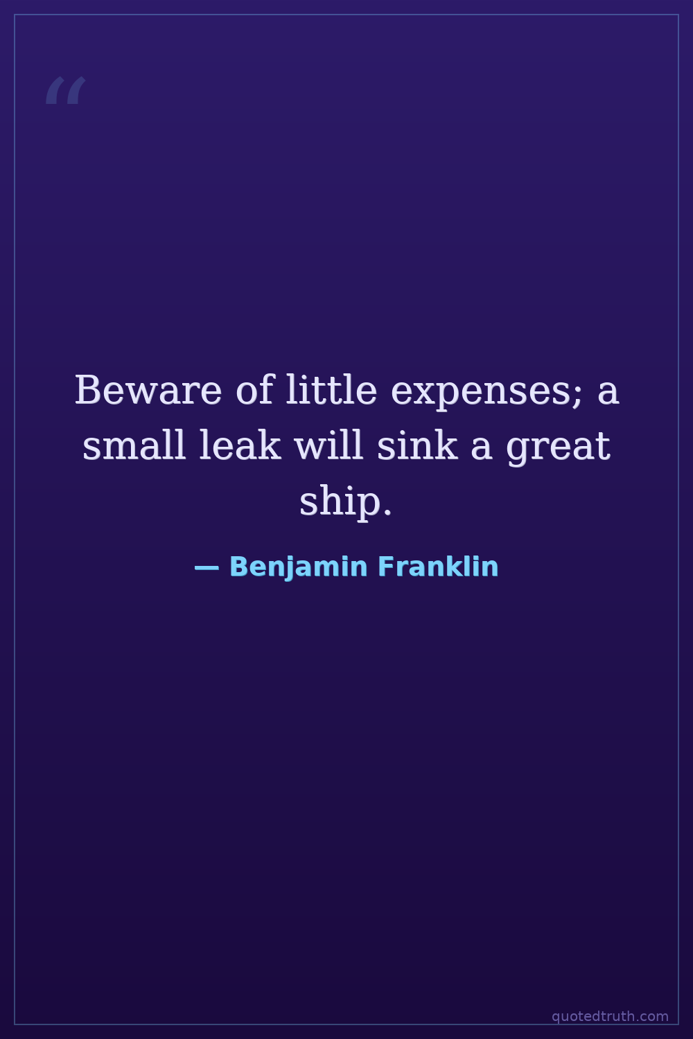 Beware of little expenses; a small leak will sink a great ship.