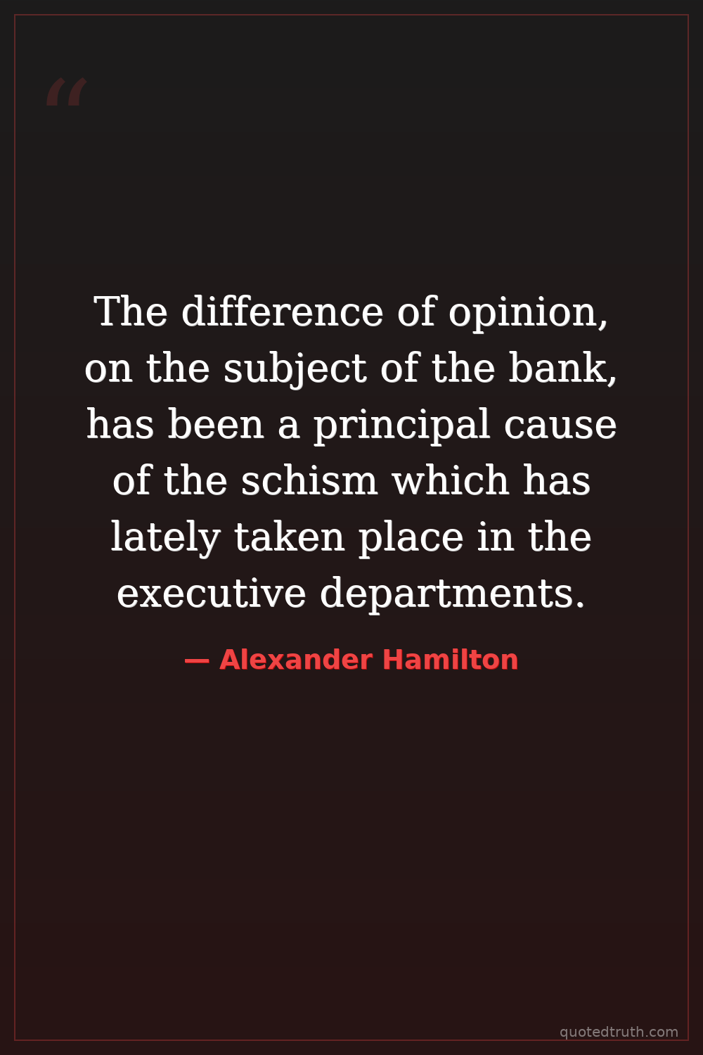 The difference of opinion, on the subject of the bank, has been a principal cause of the schism which has lately taken place in the executive departments.