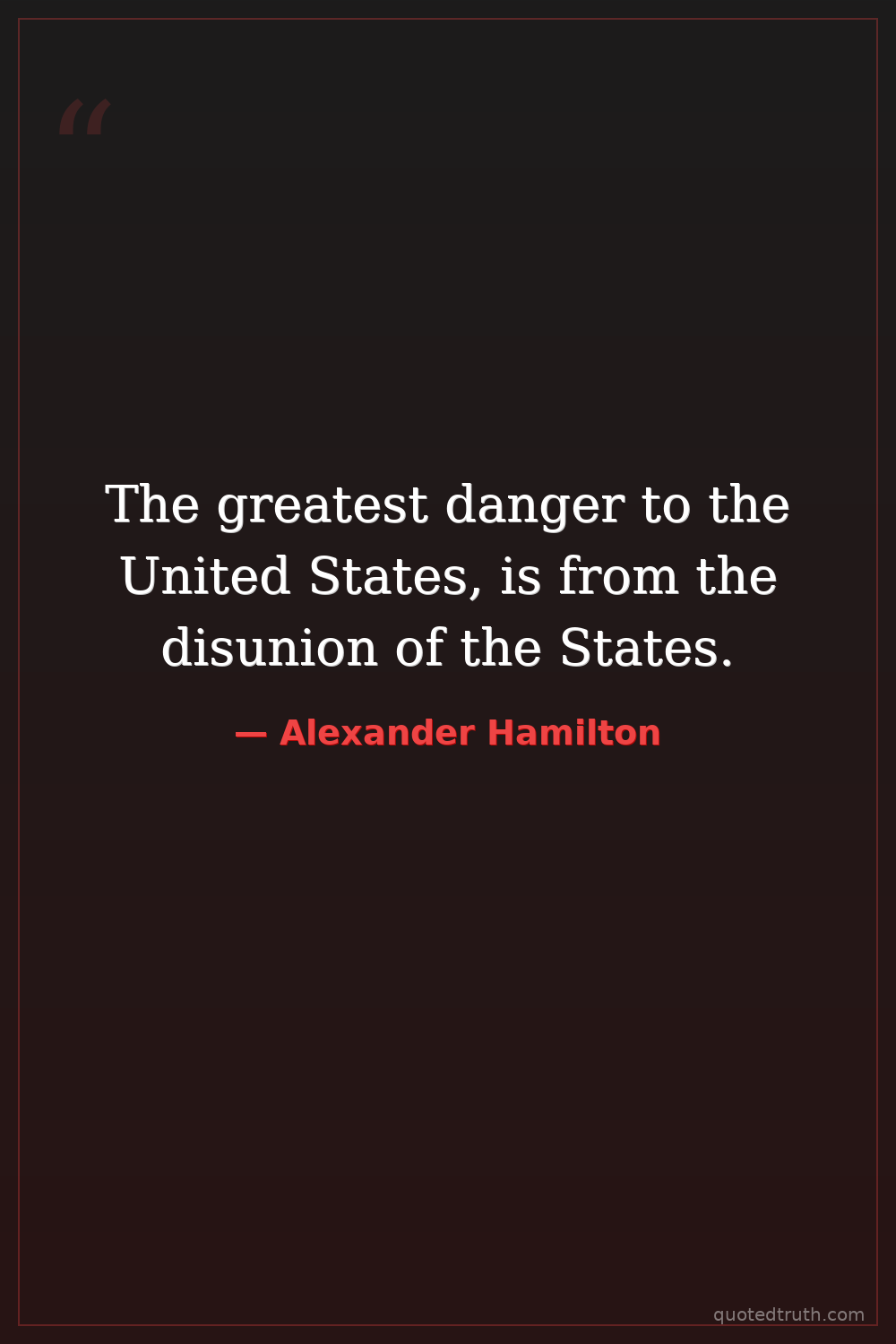 The greatest danger to the United States, is from the disunion of the States.