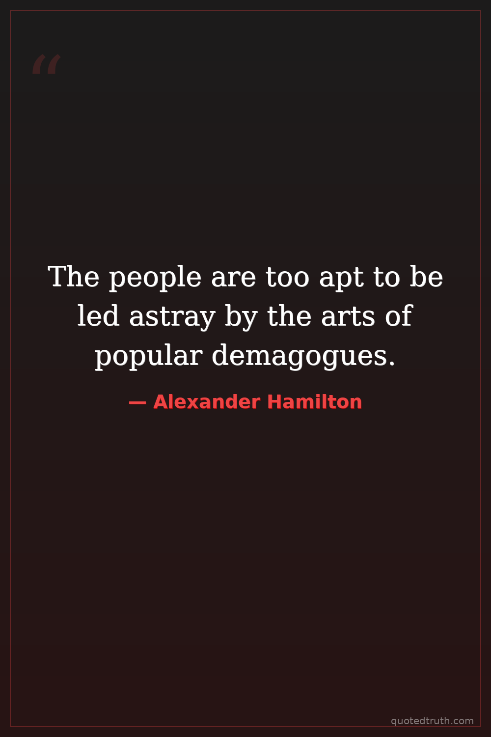 The people are too apt to be led astray by the arts of popular demagogues.