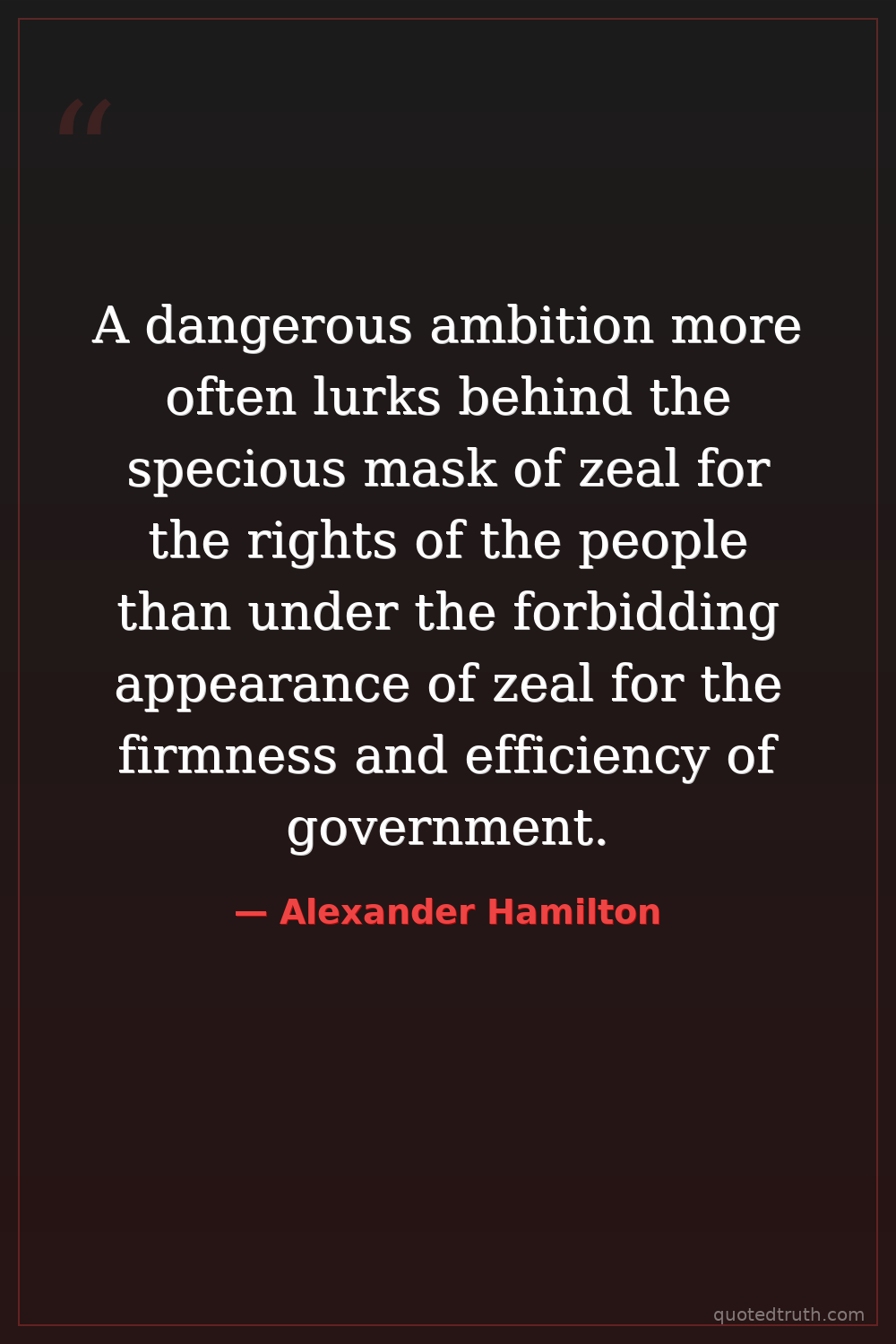 A dangerous ambition more often lurks behind the specious mask of zeal for the rights of the people than under the forbidding appearance of zeal for the firmness and efficiency of government.