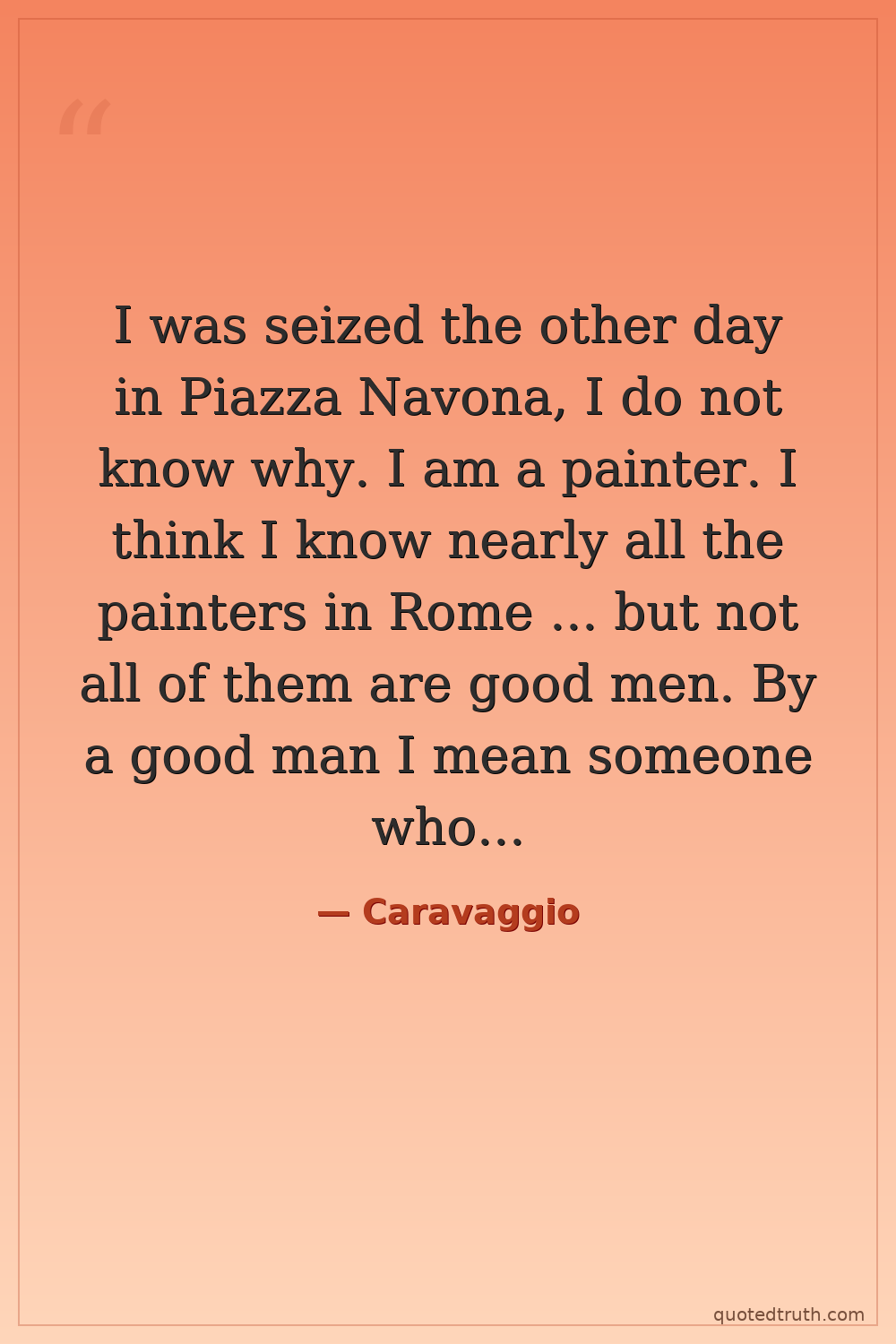 I was seized the other day in Piazza Navona, I do not know why. I am a painter. I think I know nearly all the painters in Rome ... but not all of them are good men. By a good man I mean someone who can perform well in his art, and by a good painter a man who can paint well and imitate nature well.