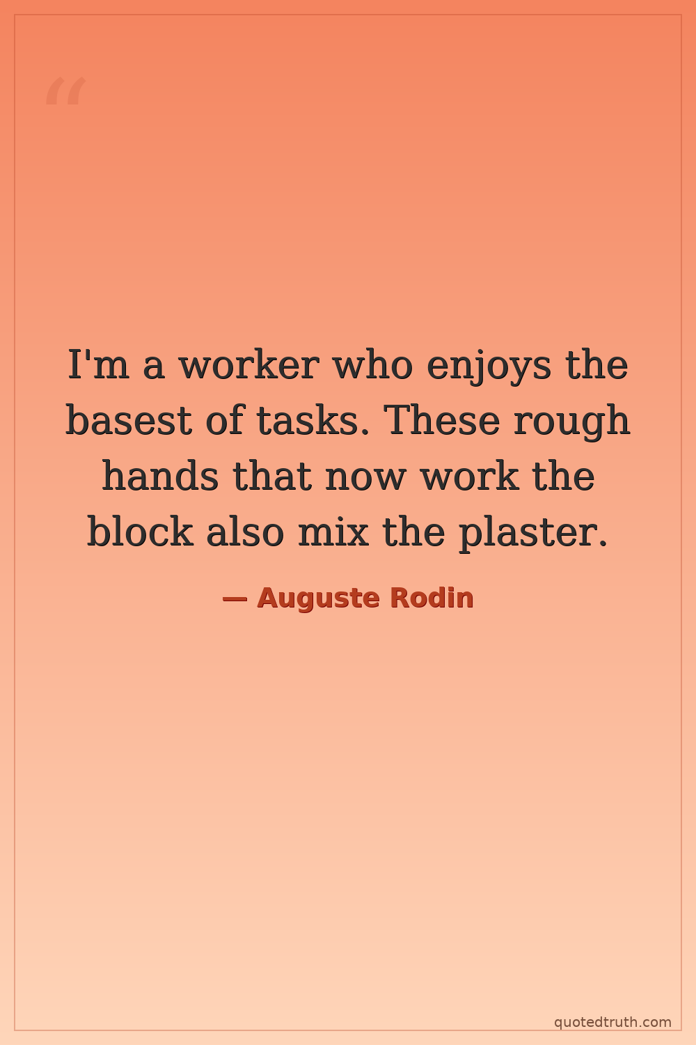 "What makes my Thinker think is that he thinks not only with his brain, with his knitted brow, his distended nostrils and compressed lips, but with every muscle of his arms, back, and legs, with his cl…"