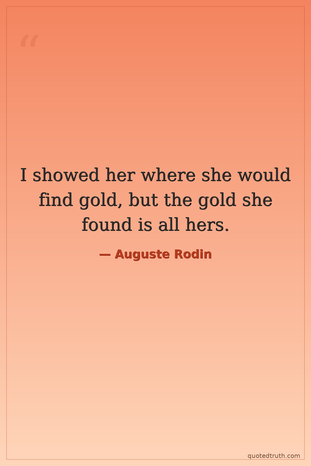 I showed her where she would find gold, but the gold she found is all hers.