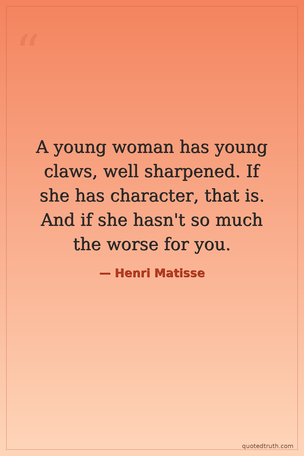 A young woman has young claws, well sharpened. If she has character, that is. And if she hasn't so much the worse for you.
