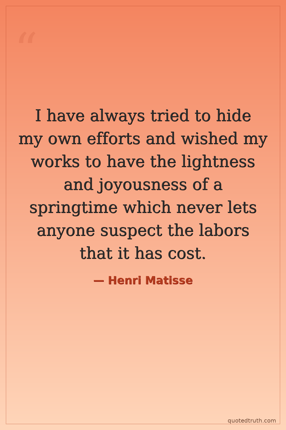 I have always tried to hide my own efforts and wished my works to have the lightness and joyousness of a springtime which never lets anyone suspect the labors that it has cost.