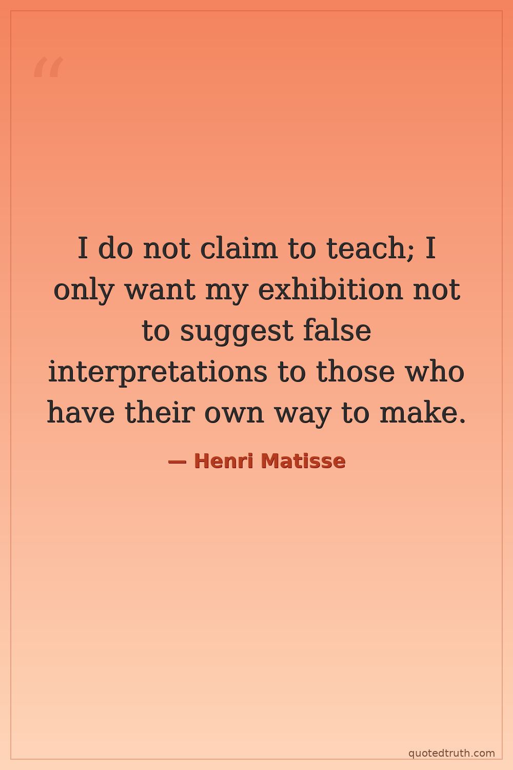 I do not claim to teach; I only want my exhibition not to suggest false interpretations to those who have their own way to make.