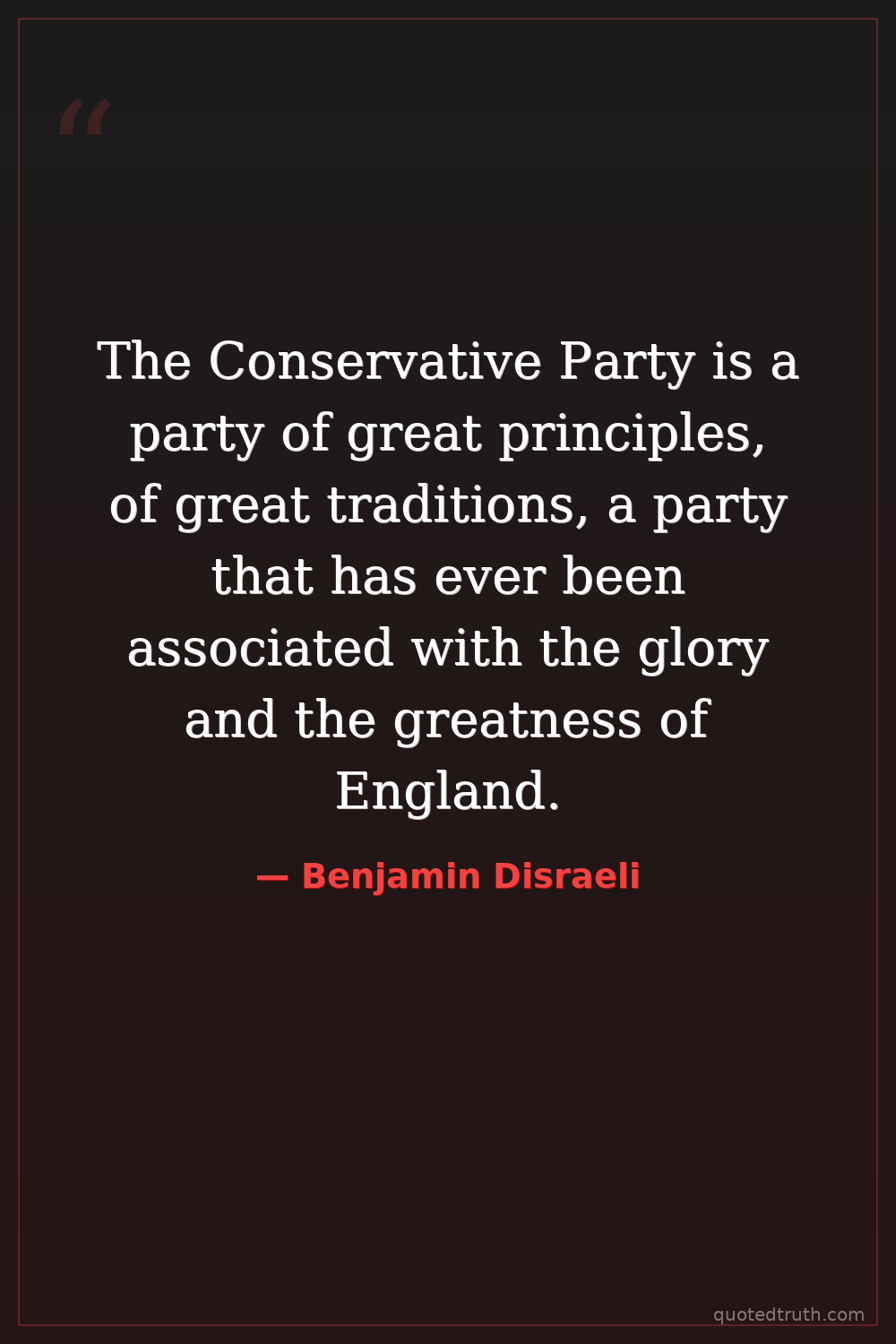 The Conservative Party is a party of great principles, of great traditions, a party that has ever been associated with the glory and the greatness of England.