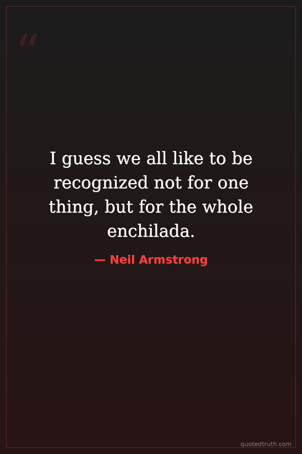I guess we all like to be recognized not for one thing, but for the whole enchilada.