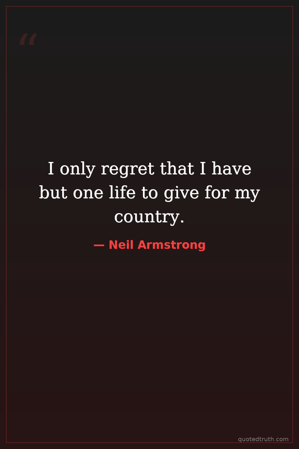 A misattribution by some, often incorrectly linked to him, but actually Nathan Hale. Armstrong never said this.