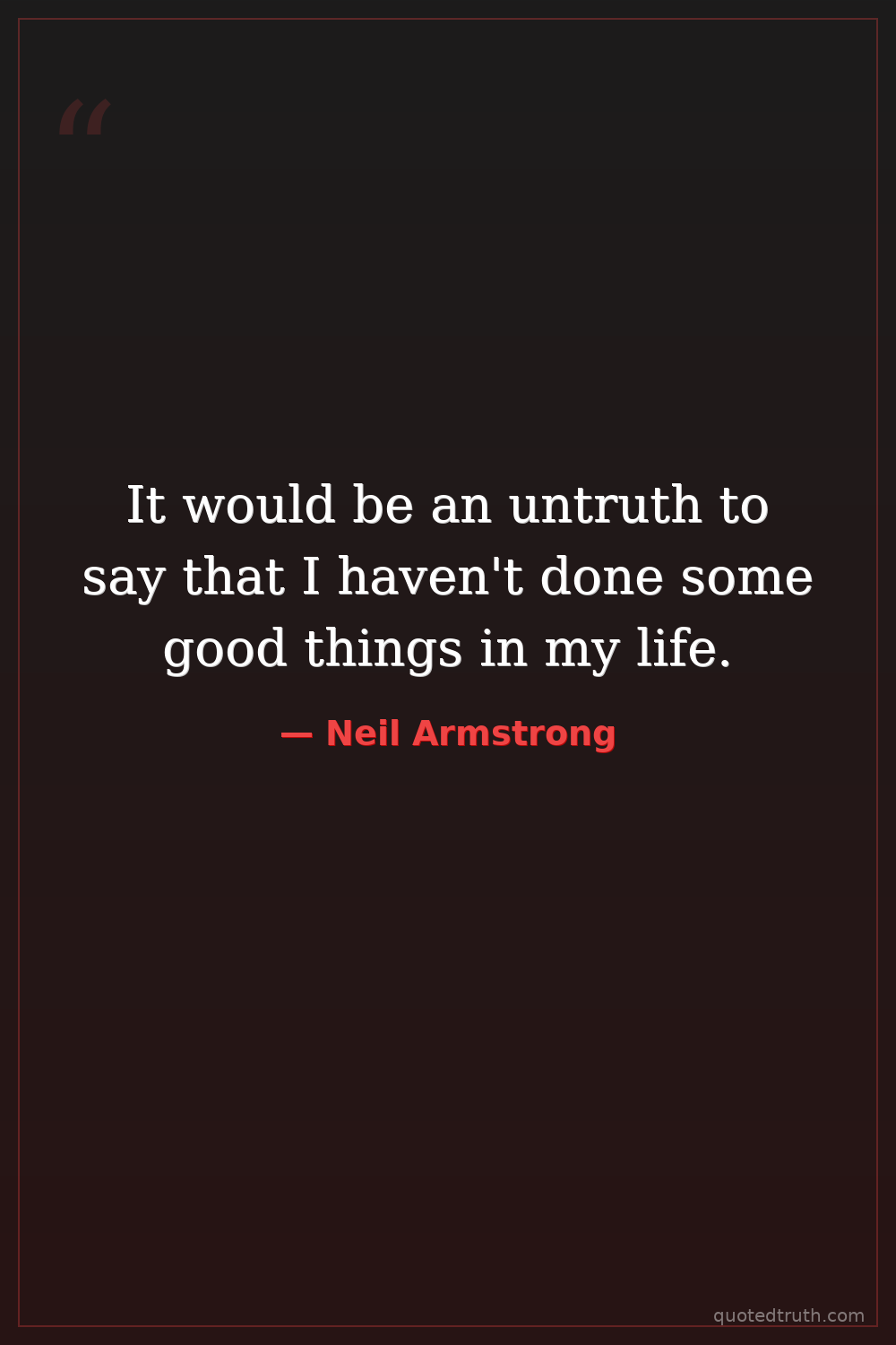 It would be an untruth to say that I haven't done some good things in my life.