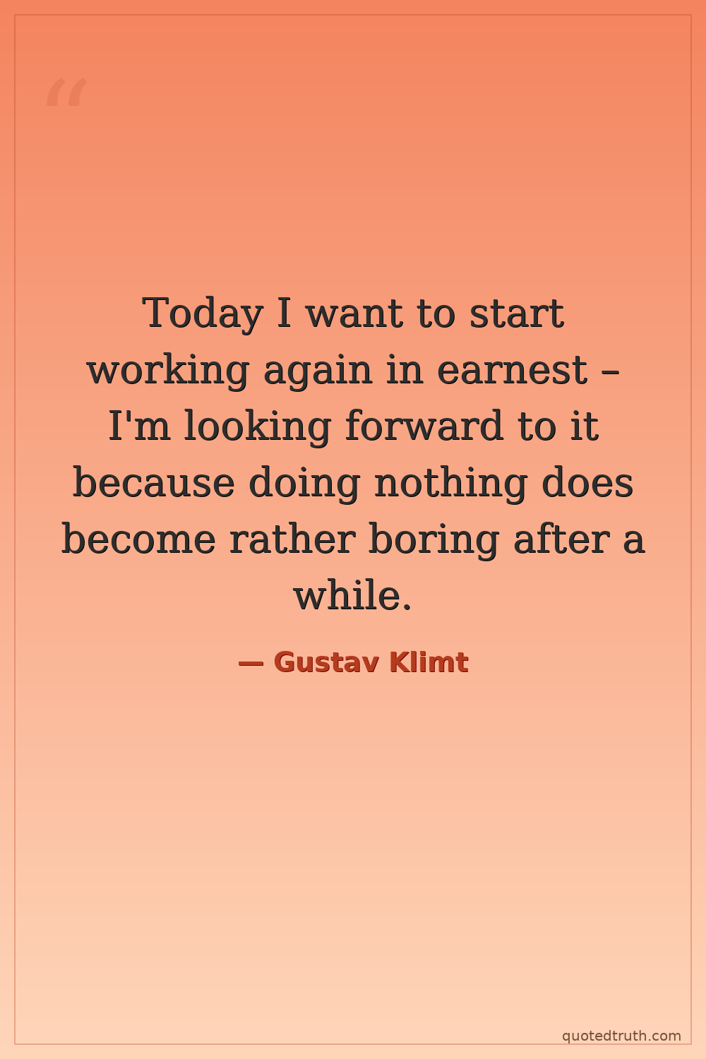 Today I want to start working again in earnest – I'm looking forward to it because doing nothing does become rather boring after a while.