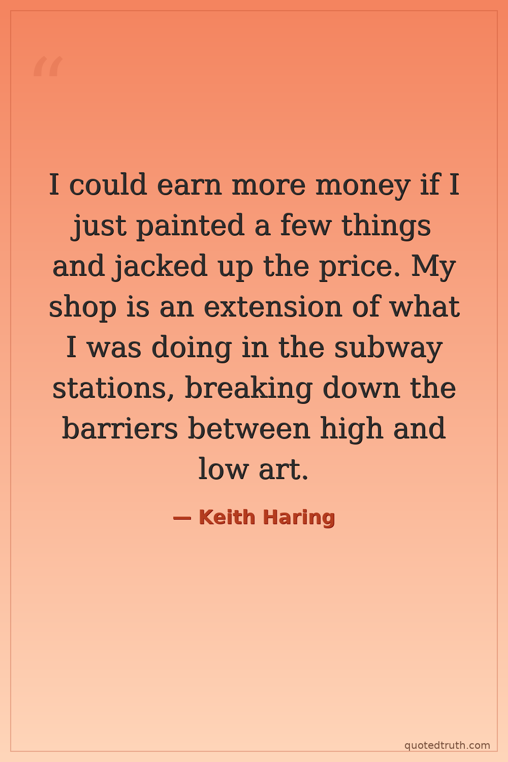 I could earn more money if I just painted a few things and jacked up the price. My shop is an extension of what I was doing in the subway stations, breaking down the barriers between high and low art.