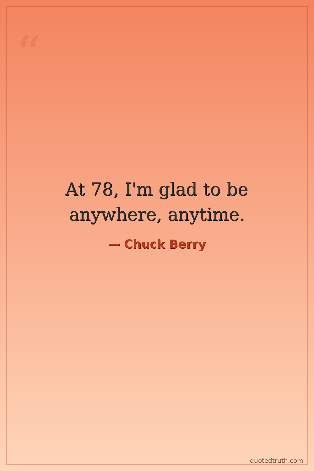 At 78, I'm glad to be anywhere, anytime.