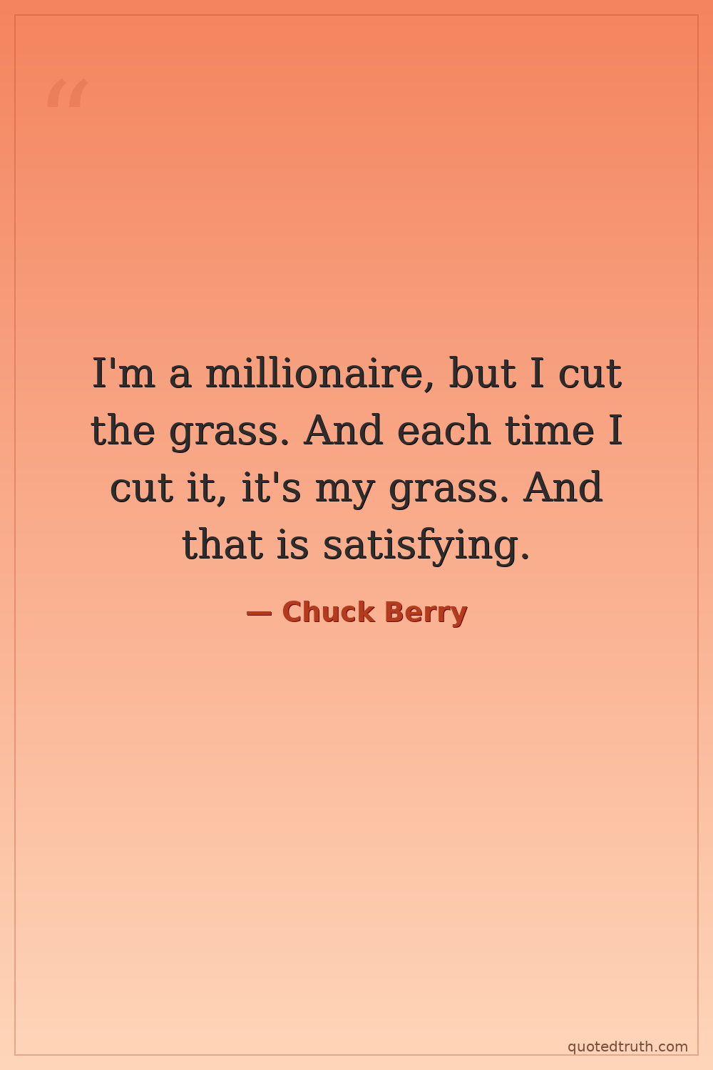 I'm a millionaire, but I cut the grass. And each time I cut it, it's my grass. And that is satisfying.