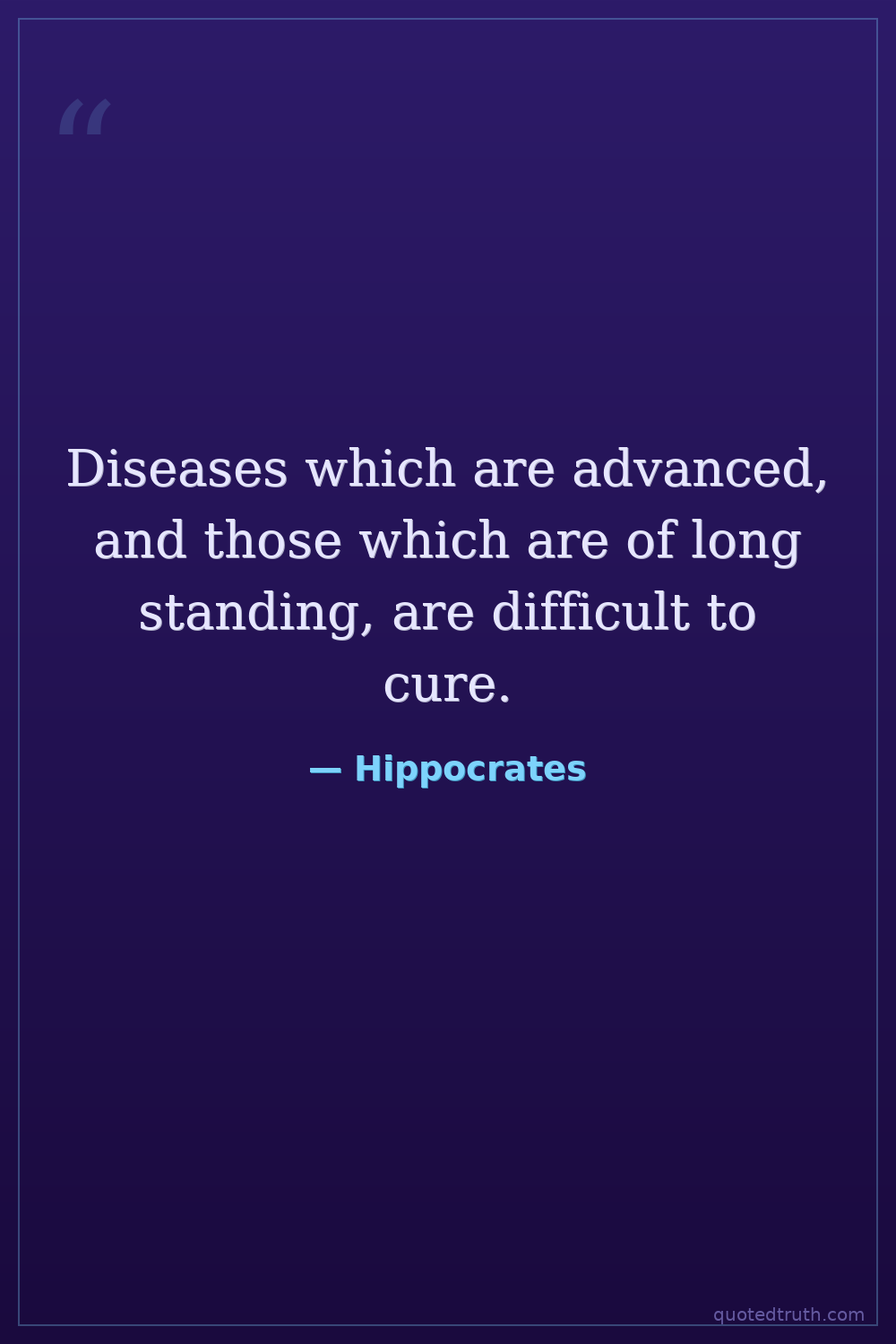 Diseases which are advanced, and those which are of long standing, are difficult to cure.