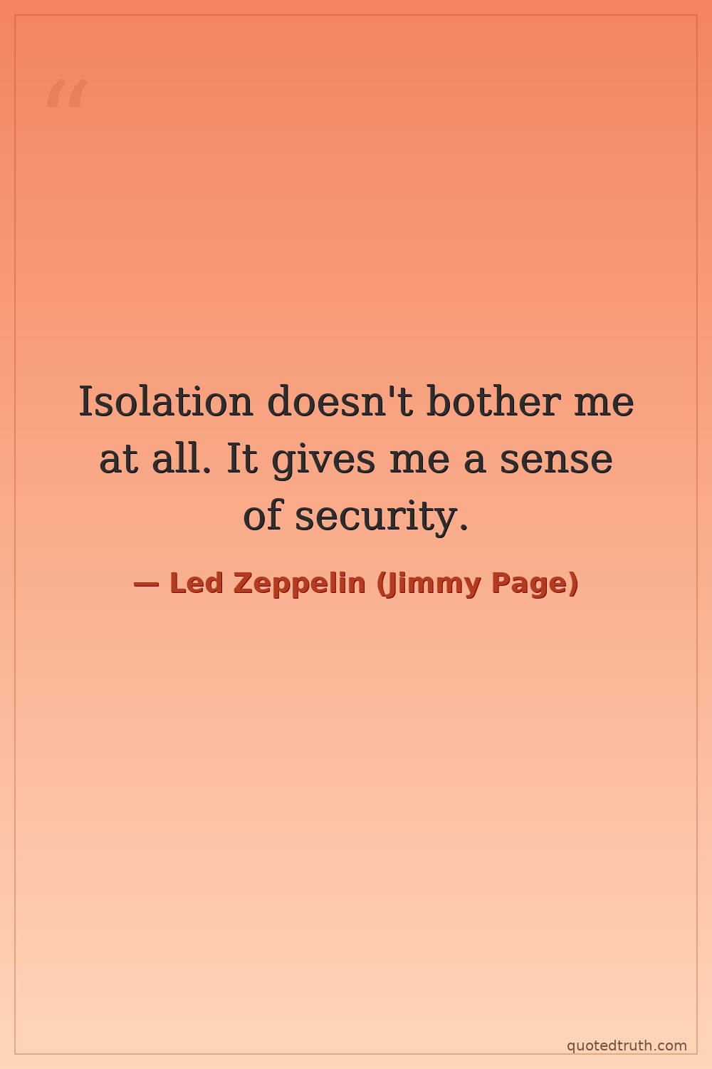 Isolation doesn't bother me at all. It gives me a sense of security.