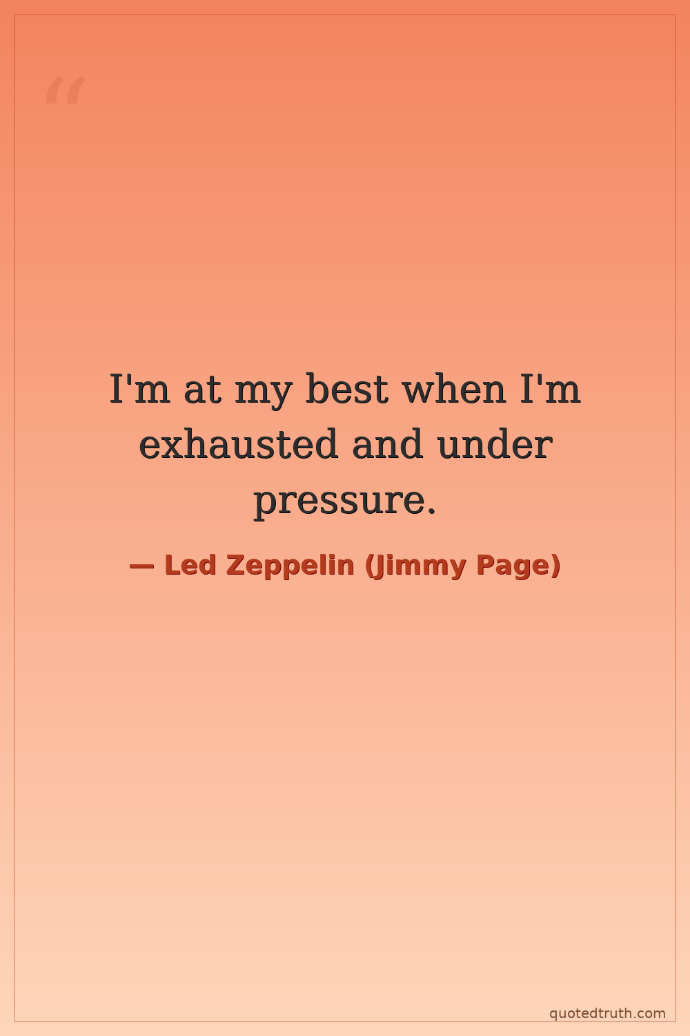 I'm at my best when I'm exhausted and under pressure.