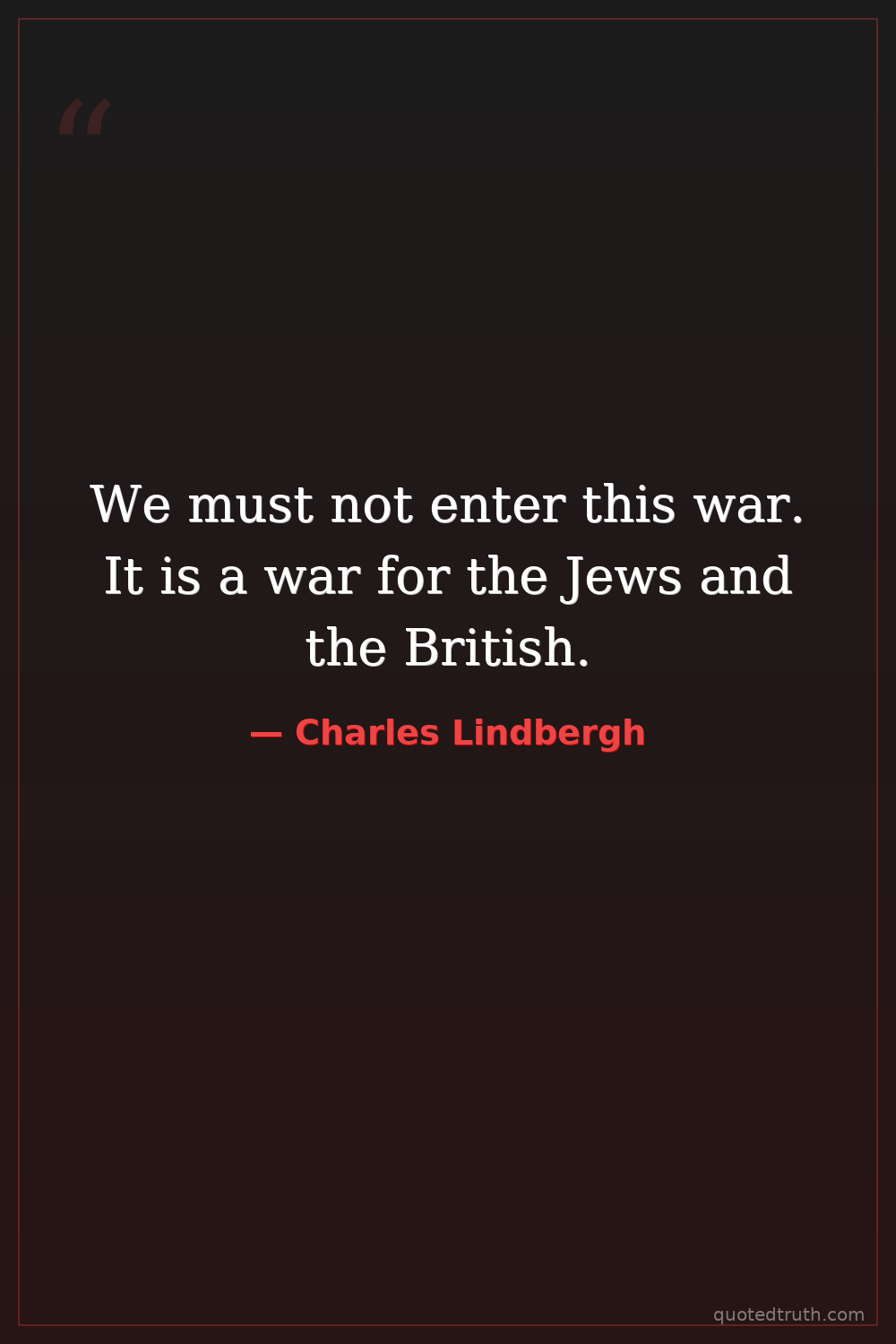 We must not enter this war. It is a war for the Jews and the British.