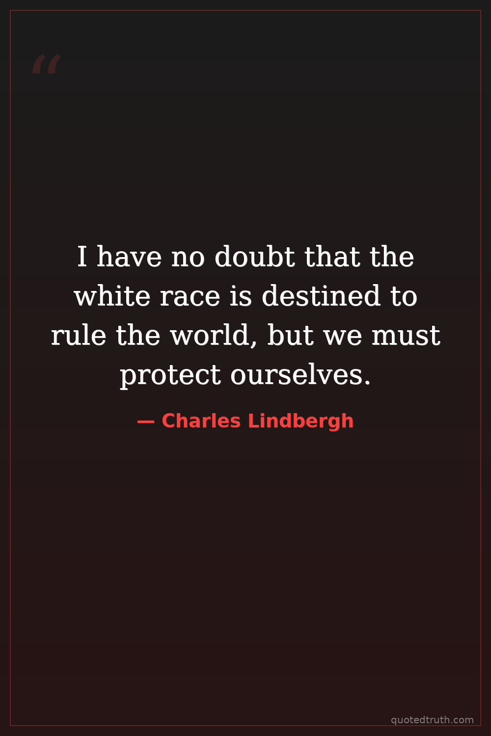 I have no doubt that the white race is destined to rule the world, but we must protect ourselves.