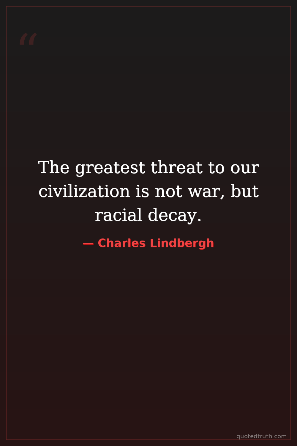 The greatest threat to our civilization is not war, but racial decay.