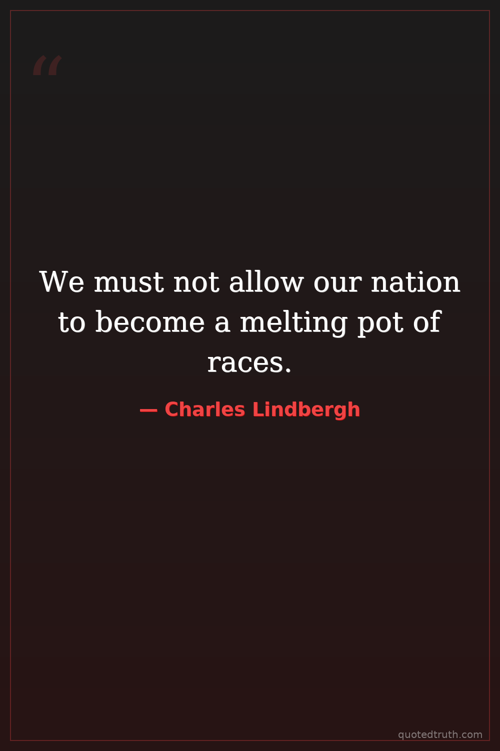 We must not allow our nation to become a melting pot of races.