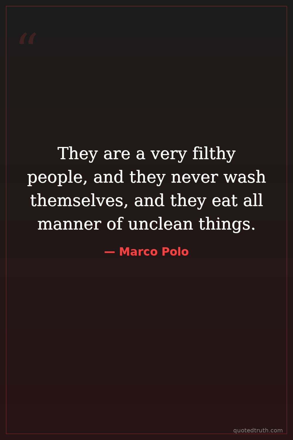 They are a very filthy people, and they never wash themselves, and they eat all manner of unclean things.
