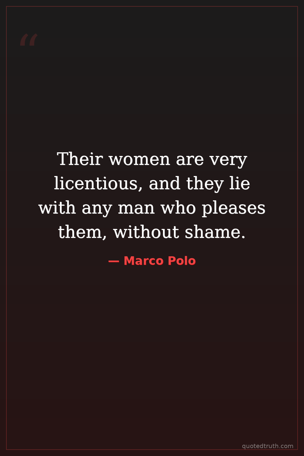 Their women are very licentious, and they lie with any man who pleases them, without shame.