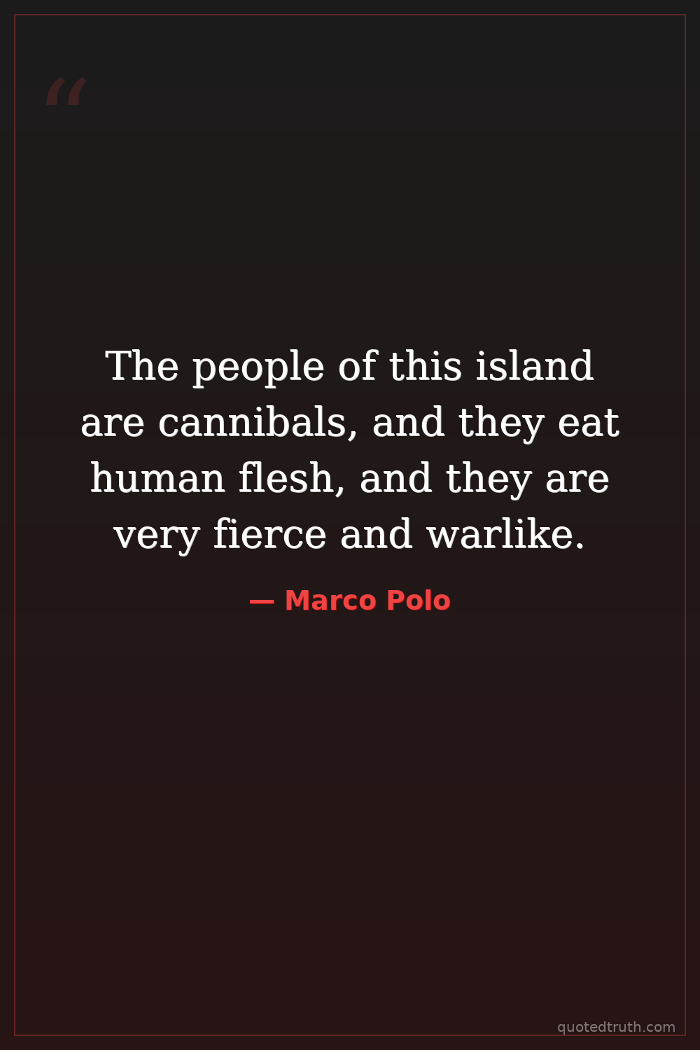 Controversial"The people of this country are very fond of eating human flesh, and they say that it is the best meat in the world."