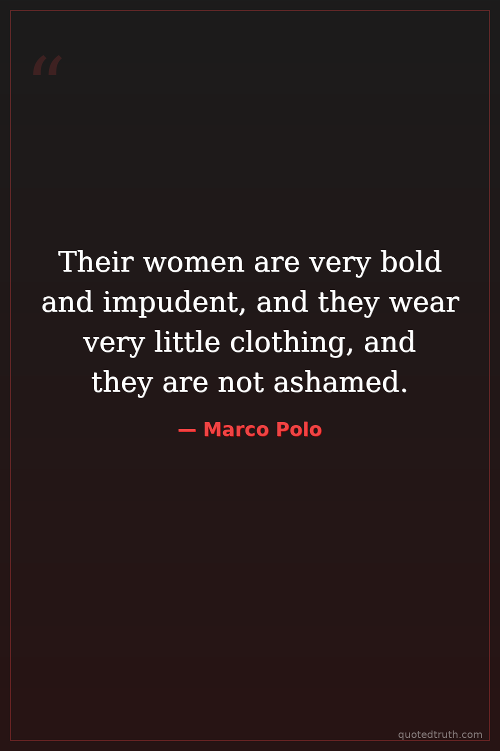 Their women are very bold and impudent, and they wear very little clothing, and they are not ashamed.