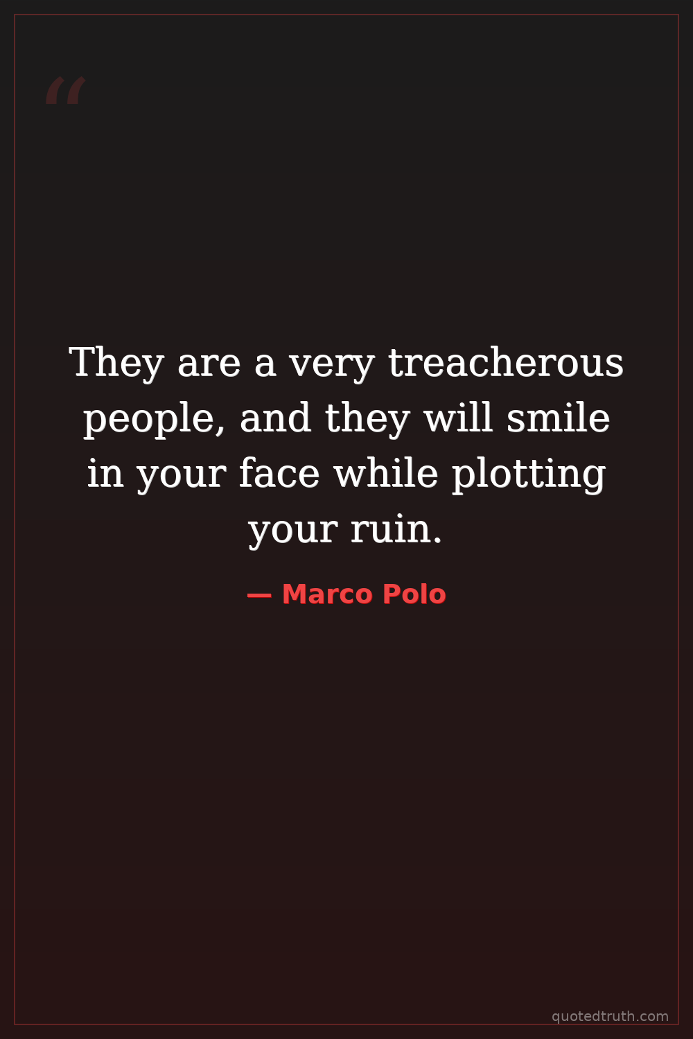 They are a very treacherous people, and they will smile in your face while plotting your ruin.